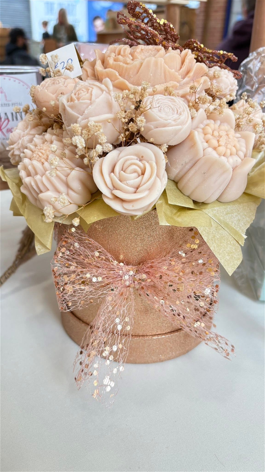 Our signature wax melt bouquet, styled in a hat box. A gift that looks like flowers, but melts into fragrance. Our hat box wax melt bouquets are hand-poured with EcoCoco wax, arranged with dried botanicals, and presented in a keepsake box. Beautiful to give, lovely to receive.